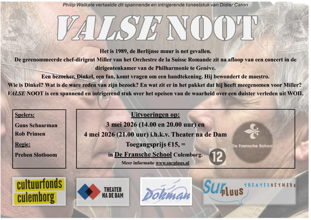 Een groep enthousiaste vrijwilligers is bezig om theaterfestival “Het Zevende Zintuig” (de tweede editie) te organiseren. We willen dat het festival opnieuw een onvergetelijke ervaring wordt voor zowel spelers als publiek. Het festival vindt plaats op zaterdag 4 juli 2026 vlakbij het Stadskantoor in Culemborg. De toneelstukken worden geregisseerd door Robbert Baars.